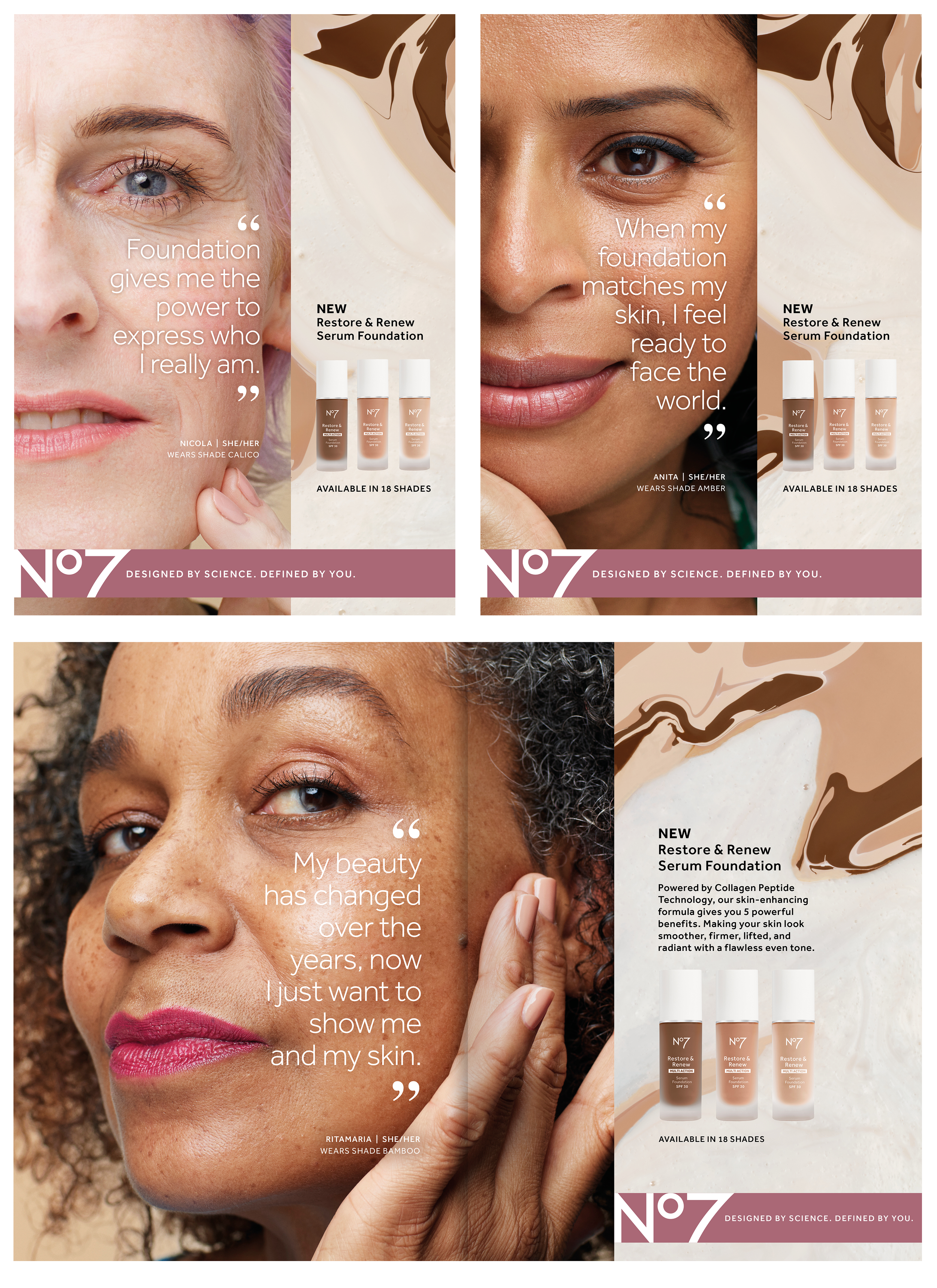 This campaign ran across VOD, Social and Print and featured real women, sharing their authentic stories and relationship with their skin & cosmetics.